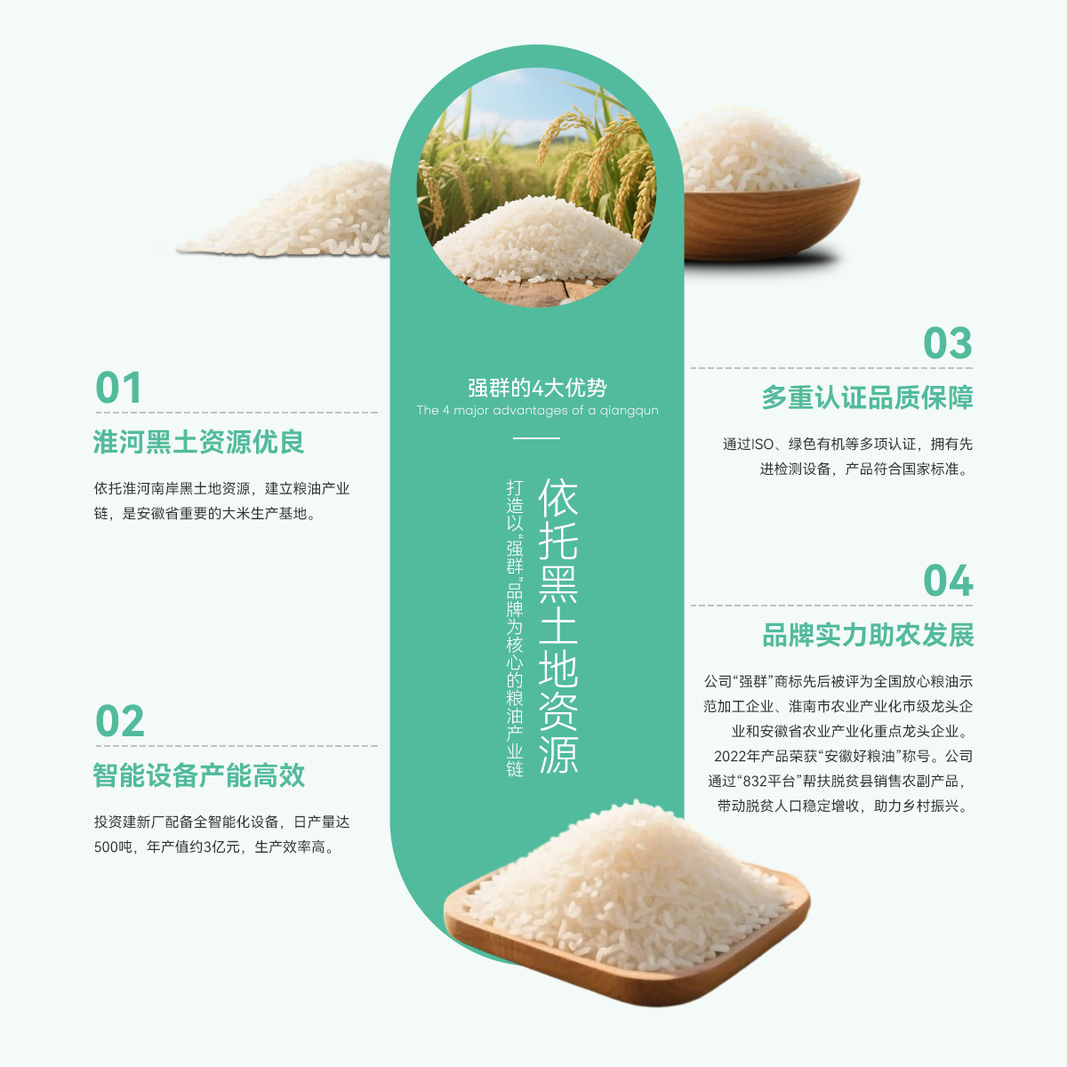 - 壽縣強(qiáng)群糧油貿(mào)易有限公司成立于2011年,座落在淮南市壽縣澗溝鎮(zhèn),是一家集種植、加工、收儲(chǔ)、銷(xiāo)售于一體、以生產(chǎn)中、高檔質(zhì)優(yōu)、特色類(lèi)大米為主的綜合性企業(yè)。公司依托準(zhǔn)河南岸的黑土地資源,打造以“強(qiáng)群”品牌為核心的糧油產(chǎn)業(yè)鏈,是安徽省重要的大米生產(chǎn)基地。 為響應(yīng)市場(chǎng)增長(zhǎng)需求,公司2021年啟動(dòng)二期擴(kuò)產(chǎn)工程,其中新生產(chǎn)廠區(qū)建設(shè)投入資金近億元,建設(shè)現(xiàn)代化新生產(chǎn)線,總占地面積約4000...